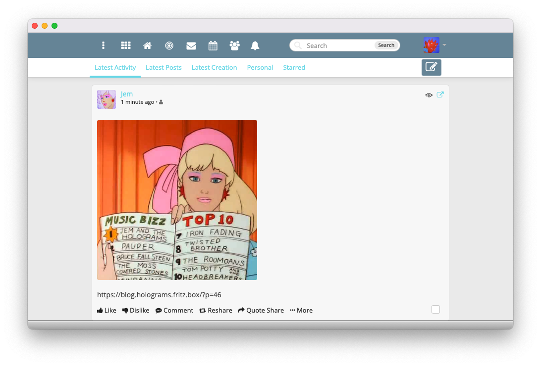I will take my examples from the 80's animated television series "Jem". You will need to watch all three seasons to understand the rest of this article. As an example ActivityPub system, I will use Friendica. Mastodon is far more common, but Friendica is what I have ready on my test systems.
